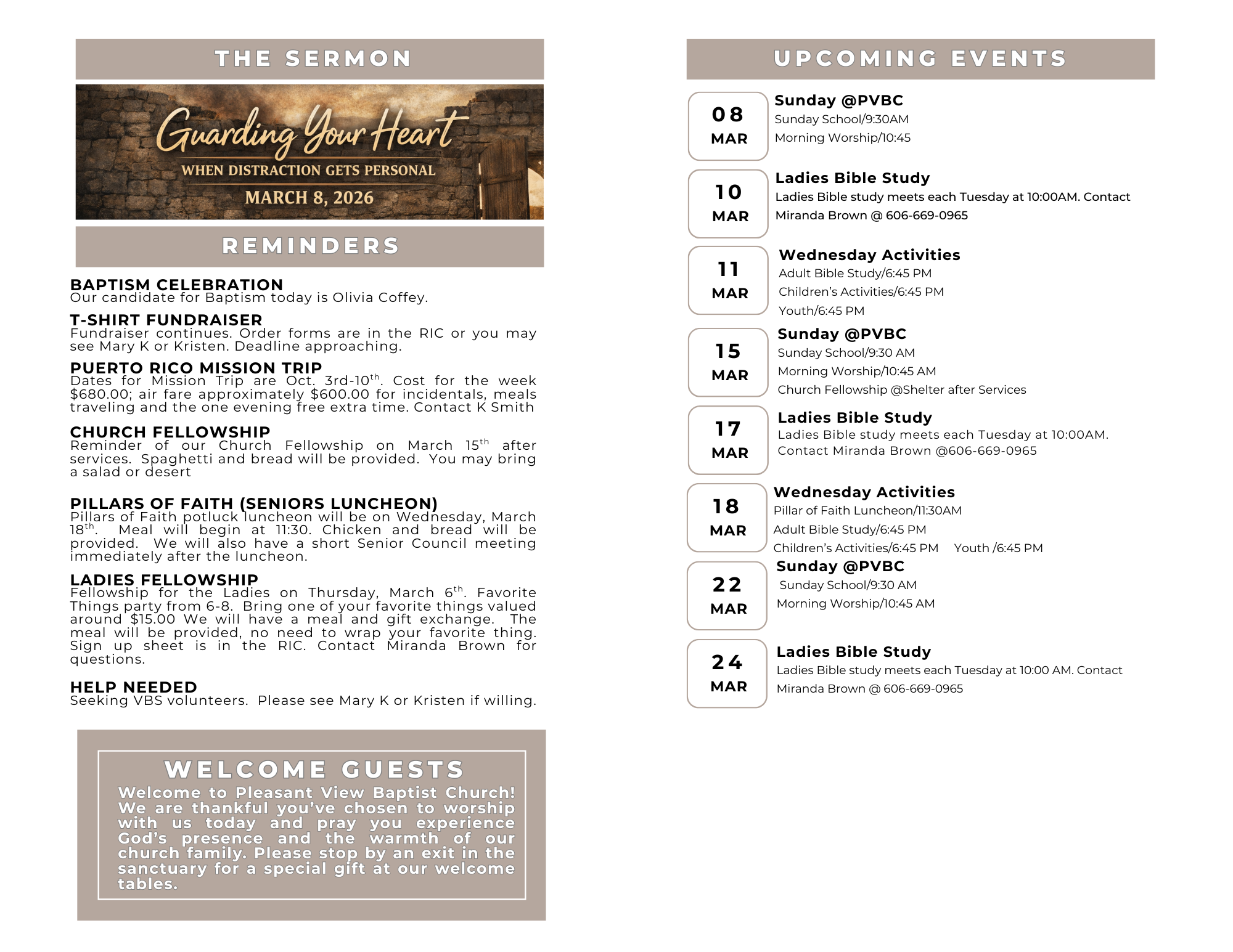 Take a look to see upcoming events and ministry opportunities.